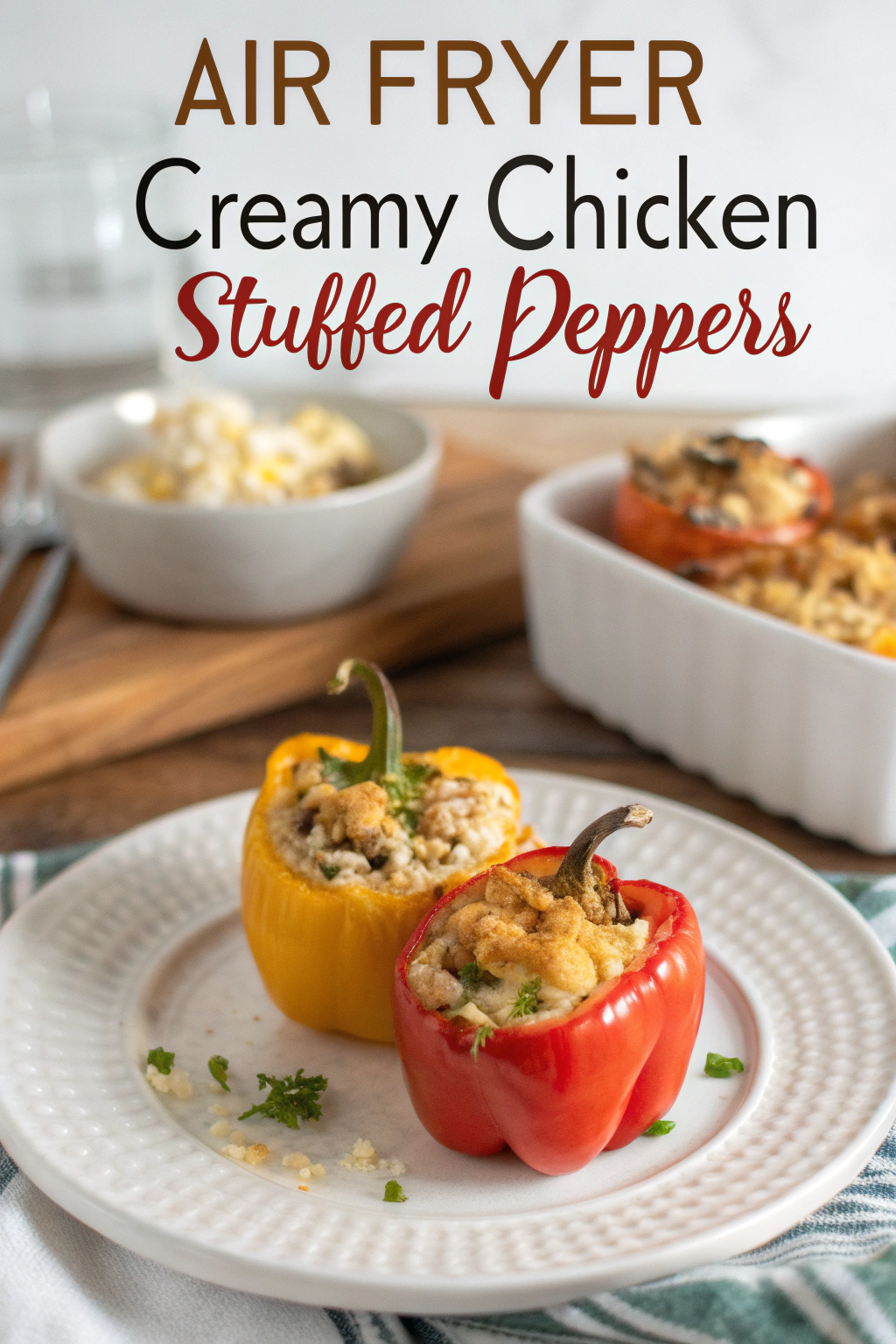 Okay, picture this: I open the fridge hunting for dinner and find four lonely bell peppers glaring at me like tiny colored buoys. I decide to rescue them by stuffing them with a ridiculously creamy, cheesy chicken filling that somehow tastes like both comfort food and a tiny celebration. I threw these together in the air fryer on a whim, and the first bite — that crunchy pepper edge giving way to silky, savory filling — made me do a happy little kitchen dance. If you like melty cheese, tangy cream, and a pepper that crisps on the outside but stays tender inside, this one’s for you.