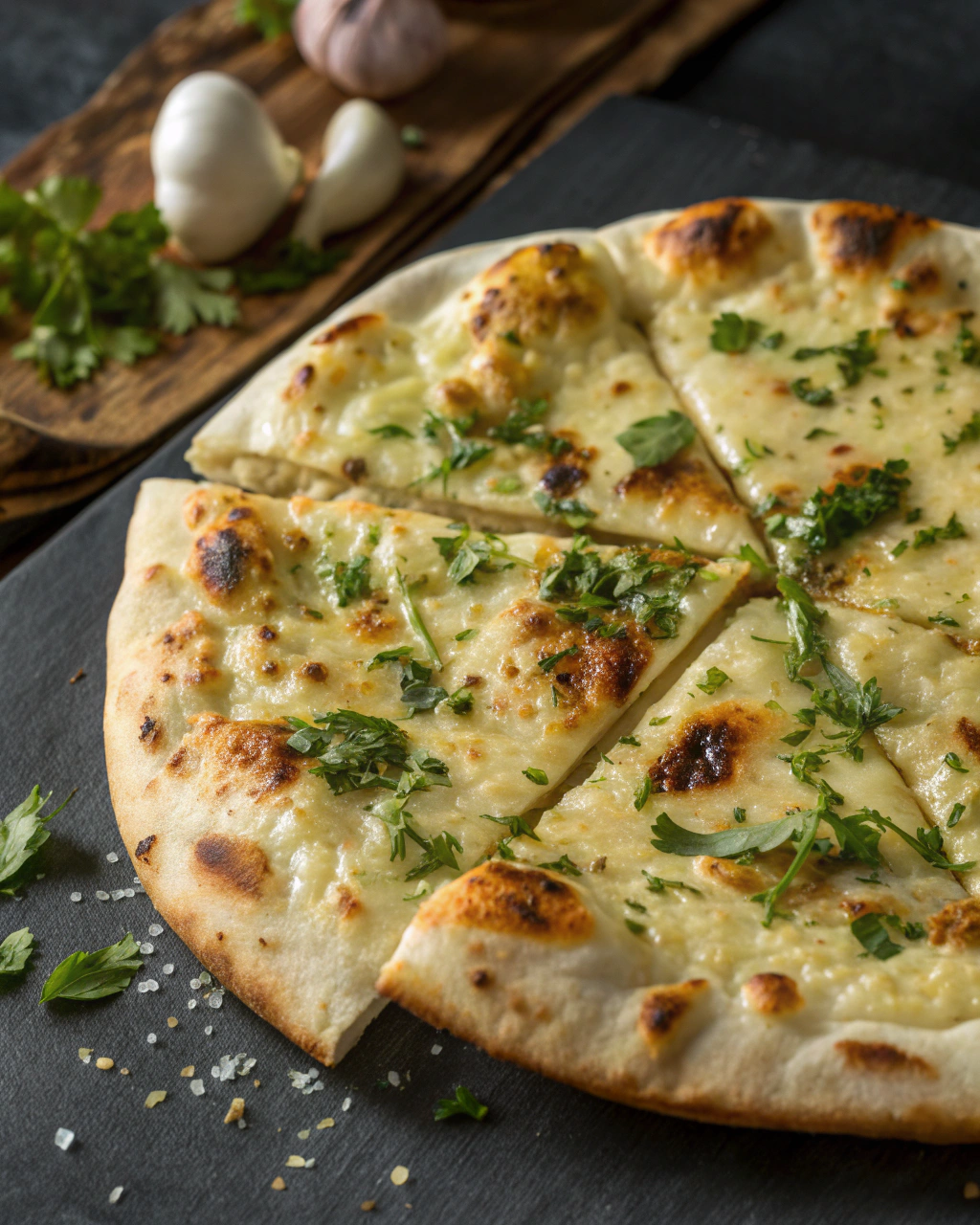 This garlic naan is perfect for cozy dinners—try it alongside a rich chicken tikka masala or your favorite vegetarian curry. It’s also incredible as a quick snack dipped into homemade hummus or raita on a chilly evening. For a casual weekend feast, serve naan straight off the skillet with fresh butter and a sprinkle of cilantro; everyone will be fighting over the last piece!