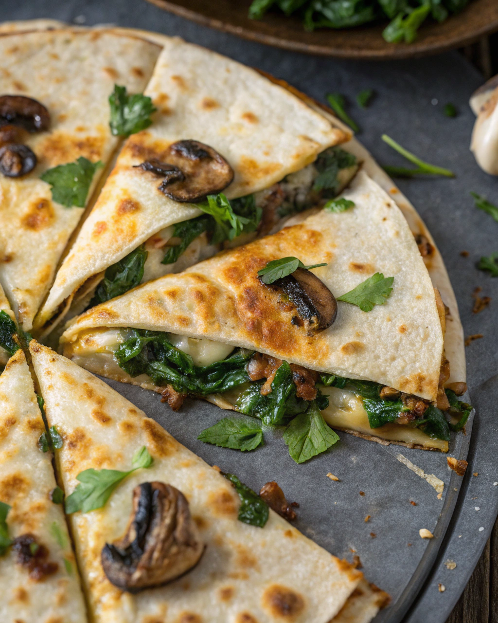 Baked Spinach Mushroom Quesadillas