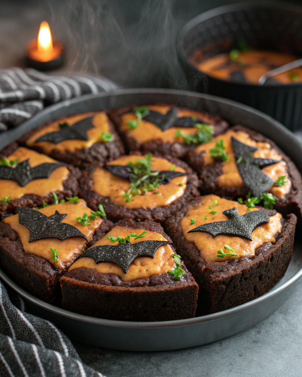 I love plating these Bat Brownie Bites alongside orange and purple napkins for a festive touch. They’re perfect at Halloween parties paired with a glass of cold milk or hot cocoa. You can also add in some roasted pumpkin seeds sprinkled around for an extra seasonal flair!
