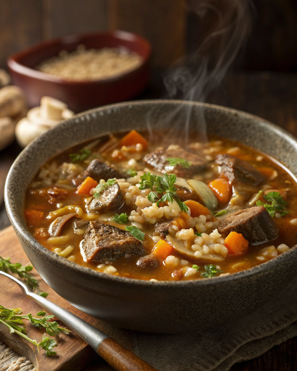 Beef and Barley Soup with Mushrooms
