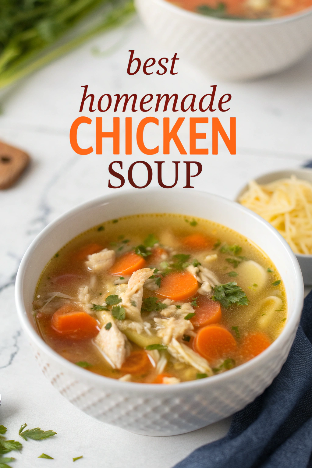 Nothing says home like a pot of soup bubbling gently on the stove—steam fogging the windows, the kitchen smelling like warm chicken and sweet carrots. I reach for this recipe whenever someone needs comfort, whether it’s a sniffly kid, a friend with the blues, or my own late-night craving for cozy. This chicken soup blends simple pantry staples with a few chefy tricks I picked up along the way: browning bones for depth, tearing herbs instead of chopping for bright pops, and a squeeze of lemon at the end to wake up the whole pot. It’s forgiving, homey, and reliably soul-mending.