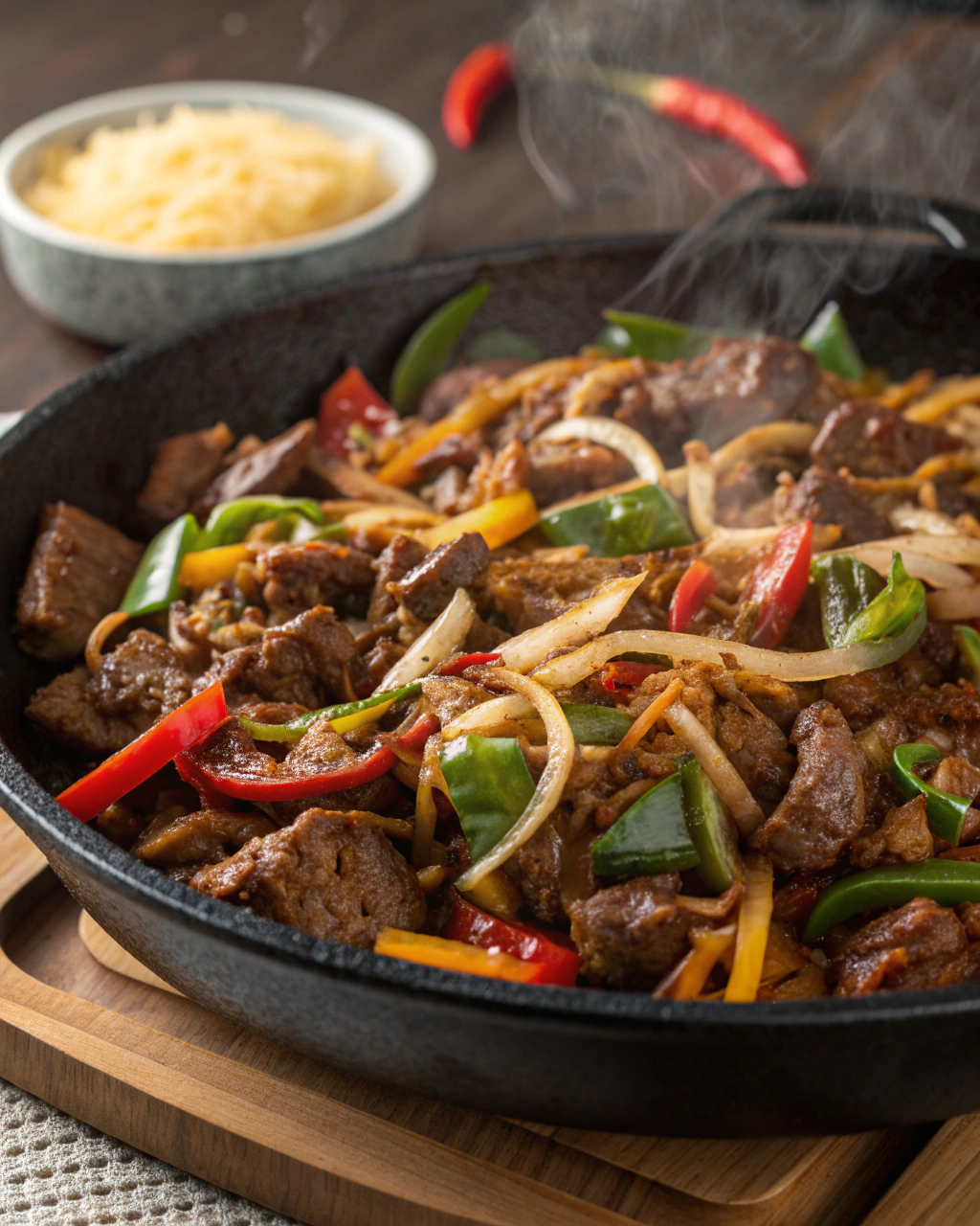 Finish with a sprinkle of chopped green onions for freshness and a pop of color. Serve immediately over steamed rice or noodles, and enjoy that perfect balance of peppery heat, tender beef, and crisp veggies!
