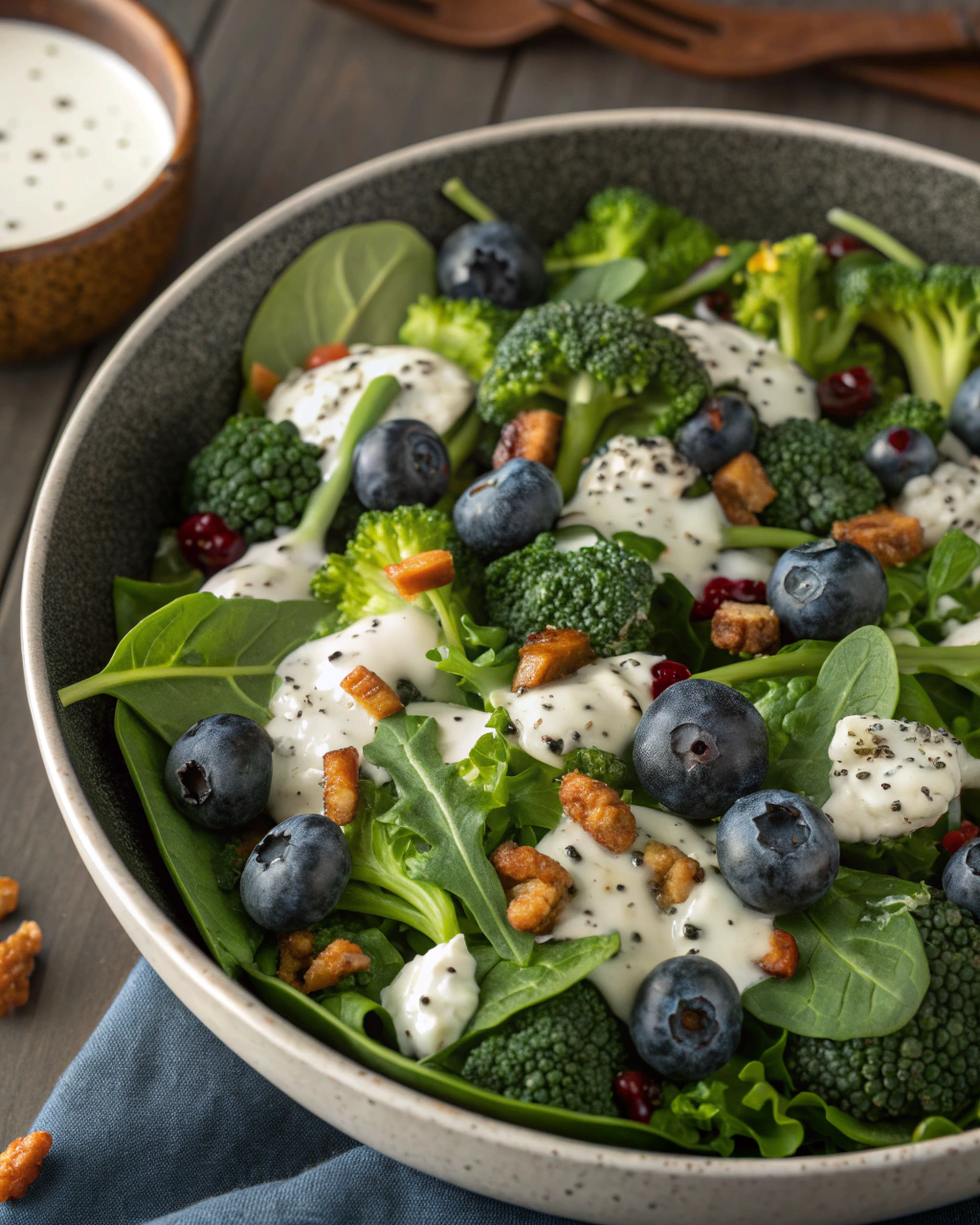 Okay, I have to confess—this salad is one of those surprise hit combos that I never expected to love so much, but here we are! Imagine the crunch of fresh broccoli and spinach, the burst of juicy blueberries, all wrapped up in a lusciously creamy poppy seed ranch dressing that just sings. It’s like a party in your mouth where healthy meets indulgent, and honestly, I can’t wait for you to try it. Plus, it’s fresh, colorful, and so easy to throw together on busy days when you still want something vibrant and satisfying. And hey, if you’ve been avoiding broccoli salads because you think they’re boring, this recipe is going to change your mind—promise!