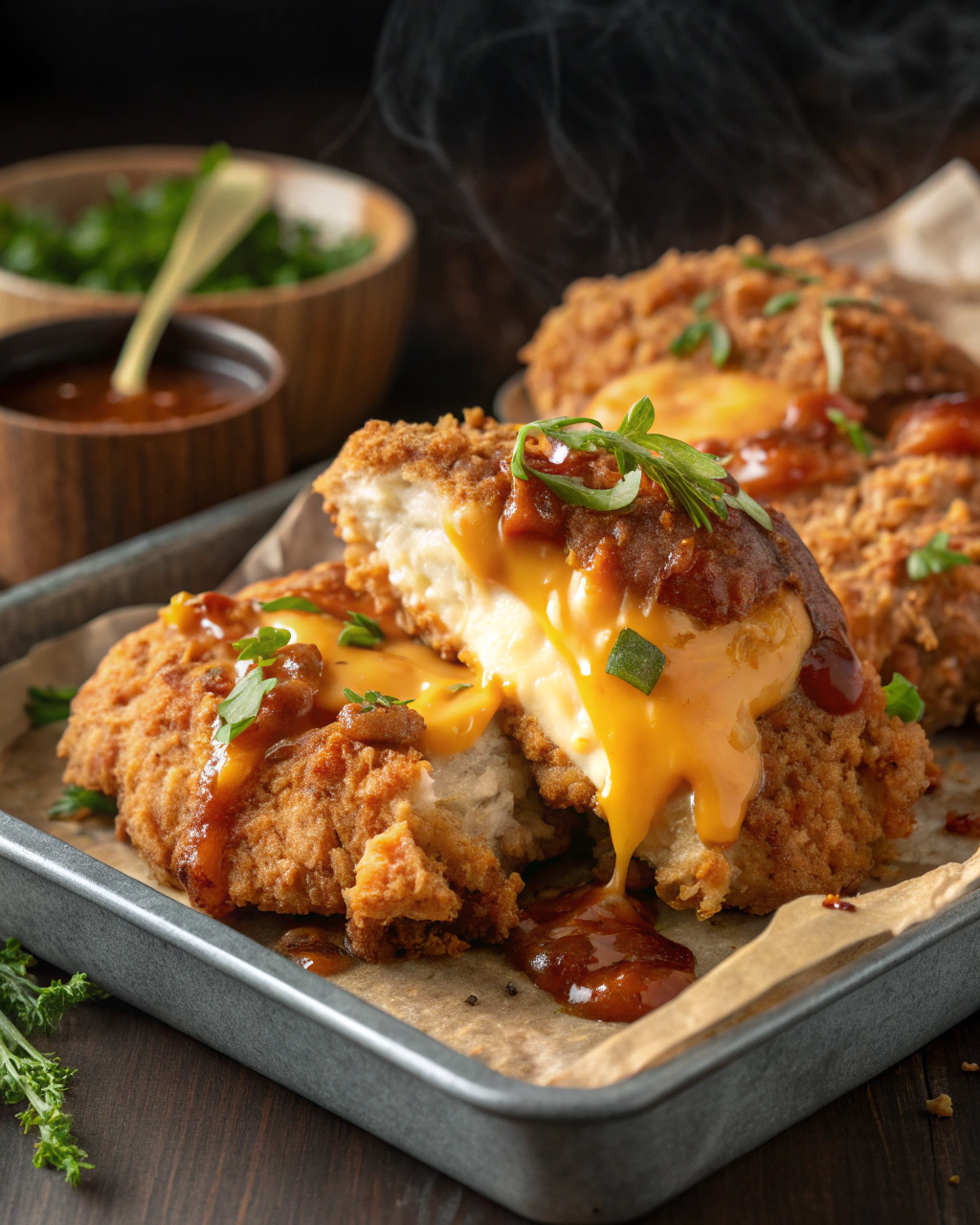 I love this chicken with buttery mashed potatoes, tangy dill pickles, and a crunchy cabbage slaw. For a casual night, pile it on a toasted brioche bun with mayo and pickles. At summer BBQs, it pairs beautifully with corn on the cob and cold beer. In winter, serve with gravy and roasted root vegetables for extra comfort.