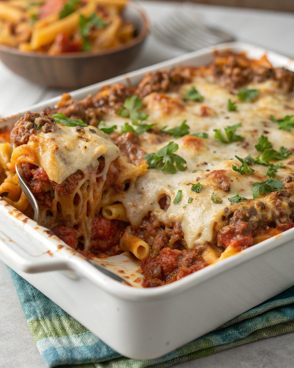 This recipe hits the trifecta: rich, cheesy layers; meaty, savory sauce; and tender pasta with crunchy, golden edges. It’s a no-fuss crowd-pleaser—comfort food that feels homemade without fussing with exotic ingredients. The texture plays hot and bubbly vs. creamy and tender, and the flavors get deeper as it rests. Plus, it’s so forgiving—swap cheeses, add veggies, or double it for a potluck. Who doesn’t love crispy cheese edges and the sound of a fork scraping a saucy bowl?