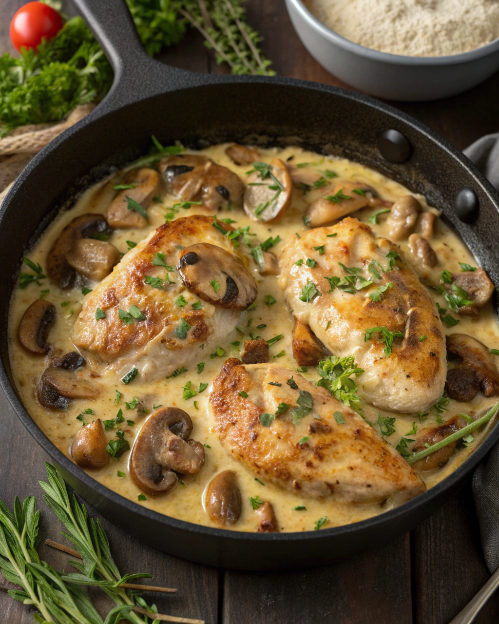 Start by heating olive oil and butter in a large skillet over medium-high heat. Season your chicken breasts generously with salt and pepper. Once the butter’s melted and foamy, add the chicken. Cook for about 5-6 minutes per side until golden brown and cooked through (internal temp should be 165°F). Transfer to a plate and tent loosely with foil to rest.