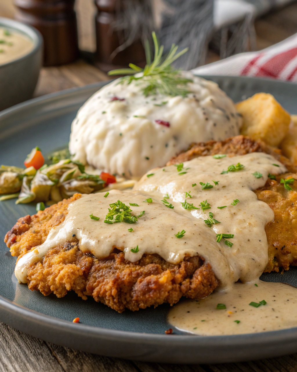 This chicken fried steak with country gravy pairs beautifully with creamy mashed potatoes and a crisp green vegetable like sautéed green beans or roasted Brussels sprouts. For a true Southern-inspired feast, don’t forget a side of buttery cornbread to soak up every last drop of that gravy. It’s perfect for weekend brunches or a cozy family dinner that feels like a celebration.