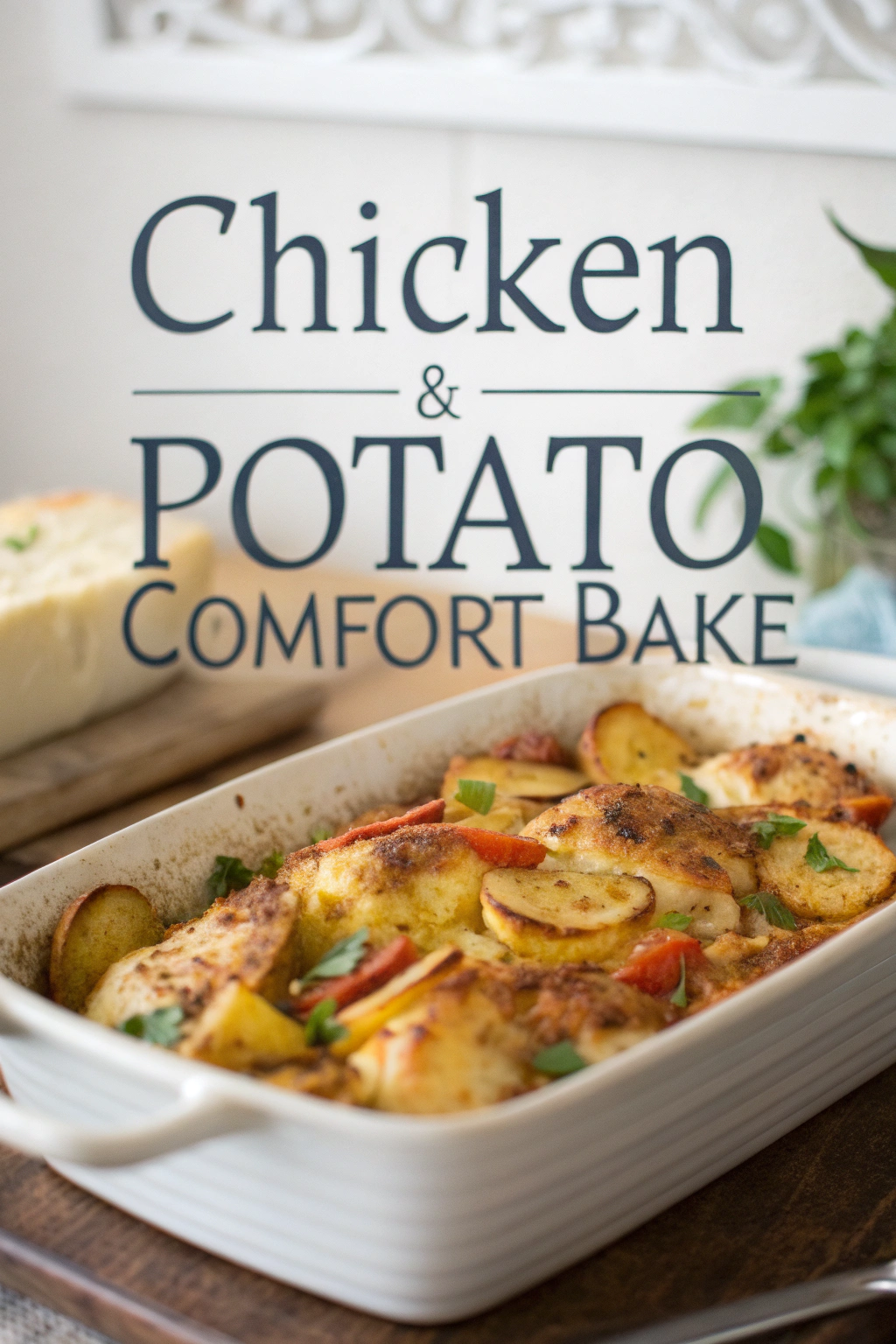 I still smell it if I close my eyes — my grandmother’s kitchen on a rainy Saturday, the air thick with roasted potatoes and browned chicken skin. I grew up watching her slide a bubbling tray from the oven, steam fogging the windows, and I vowed to learn every shortcut she used. This Chicken & Potato Comfort Bake feels like that memory: humble, forgiving, and wildly satisfying. It crisps the skin, softens the potatoes into pillowy little clouds, and fills your house with smells that make neighbors suddenly “drop by.” If you want a one-pan, weeknight-friendly dinner that delivers warmth and nostalgia, stay with me — this is the cozy recipe I turn to when I need edible comfort fast.