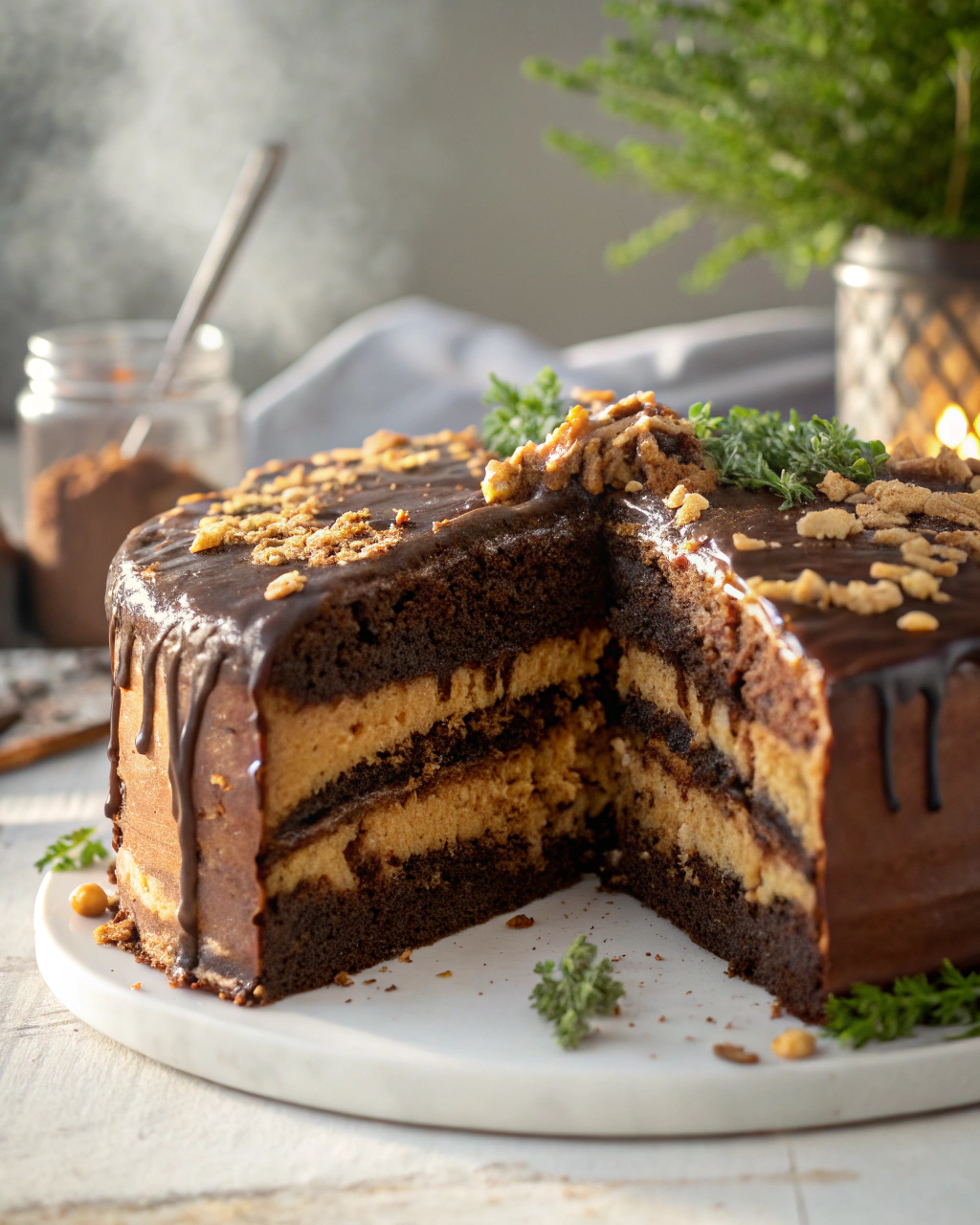 Closing: This is one of those no-fail, pantry-friendly cakes that never disappoints—trust me, it’ll soon be your go-to for chocolate and peanut butter cravings alike!