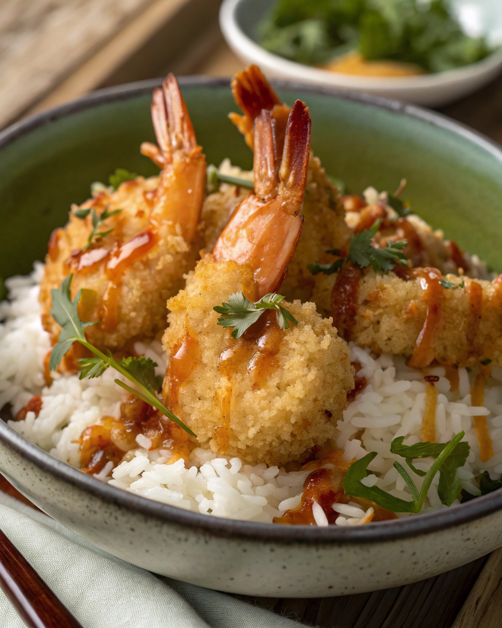 Fluff the rice with a fork, plate it alongside the crispy shrimp, drizzle or dollop the spicy mayo on top, and garnish with fresh cilantro leaves and a couple of lime wedges. Serve immediately for maximum crunch!