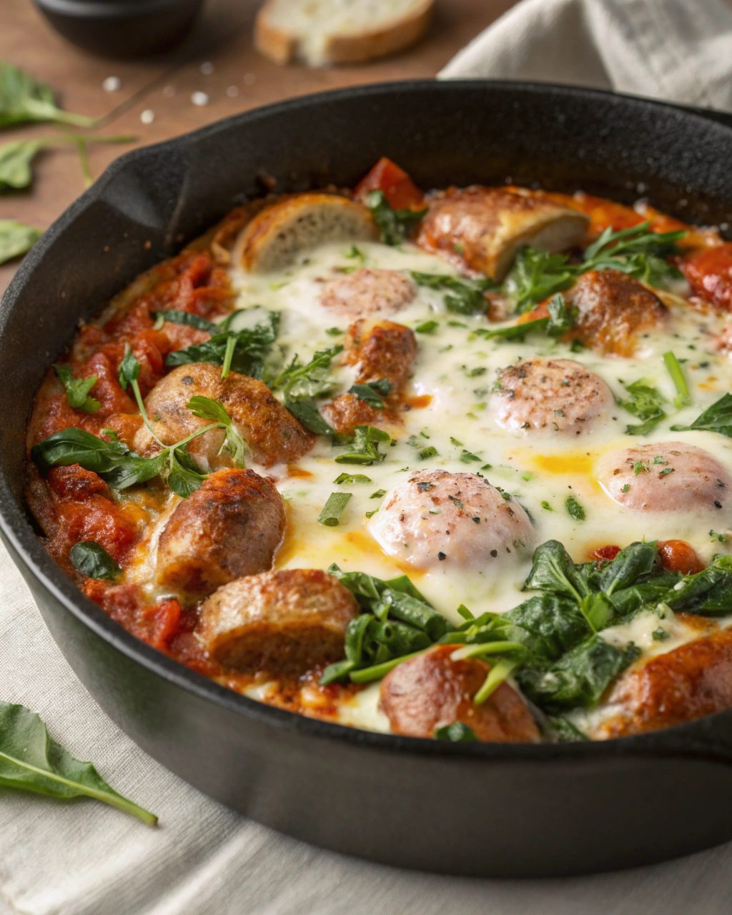 This skillet dinner pairs beautifully with a crusty baguette or over creamy polenta for extra comfort. It’s perfect for cozy weeknights when you want one-pan simplicity but lots of satisfying flavors. And because it’s packed with protein and greens, it’s great served alongside a simple green salad tossed in vinaigrette on warmer days.