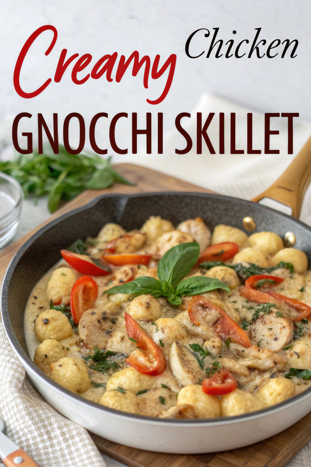 I love weeknight dinners that feel like a warm hug, and this Creamy Chicken Gnocchi Skillet does exactly that. The kitchen fills with the nutty perfume of sautéed garlic and mushrooms while little pillowy gnocchi sizzle and brown at the edges — comfort in a single pan. I make this when I want something cozy but not fussy: tender **chicken**, pillowy **gnocchi**, a silky **cream**-and-**Parmesan** sauce, and a handful of bright spinach to keep things lively. It warms you from the inside out and comes together fast, which means more time to sip wine and less time hovering over the stove. Trust me, your future self will thank you.