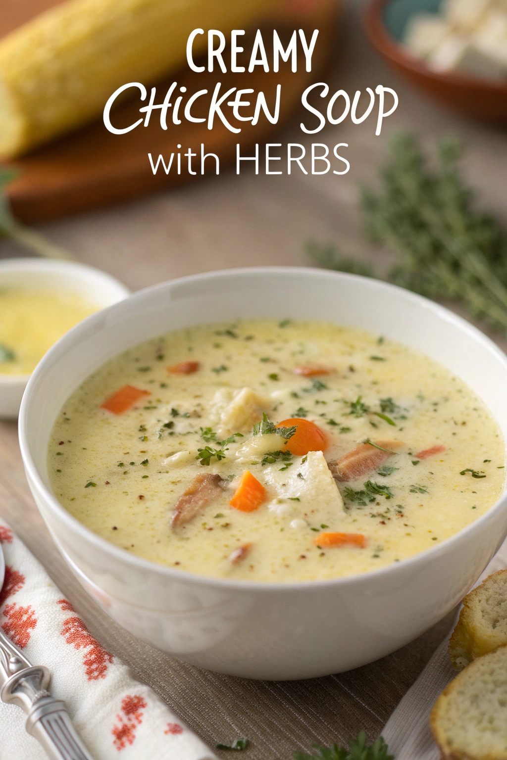 There’s nothing fancy about this soup, and that’s the whole point — it reminds me of rainy afternoons when my mom would stir a pot on the stove and the whole house smelled like warm butter, thyme, and slow-cooked comfort. I pull that same cozy routine into my kitchen: gentle sautéing, a few casual stirs, and the kind of steam that fogs up the windows and makes you want to wrap your hands around a bowl. This Creamy Chicken Soup with Herbs feels like a hug in a bowl — soft shredded chicken, silky broth, bright herbs, and a little lemony lift that keeps it from being cloying. It’s easy, forgiving, and perfect for weeknights or when you need a little nostalgia served hot.