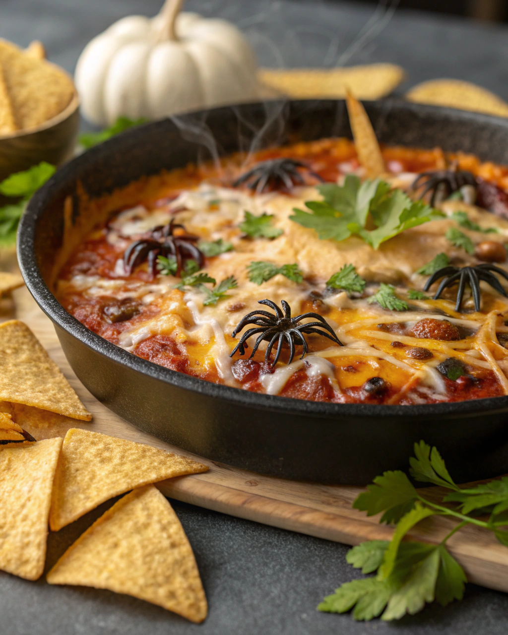 Creepy Crawly Taco Dip – fun Halloween party dip recipe