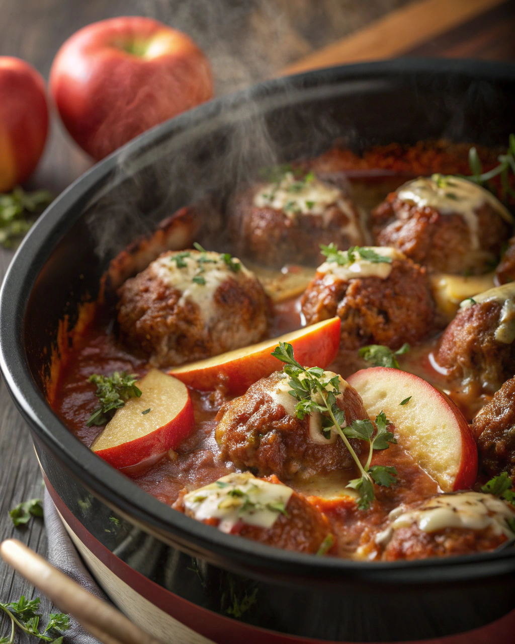 Okay, imagine this: tender little meatballs simmering all day in your crockpot, soaking up this slightly sweet, apple-infused sauce that smells like a cozy autumn day. Yep—this recipe basically turns your slow cooker into a magic box of comfort and flavor. The juicy apples add a subtle sweetness that perfectly balances the savory meat, creating a combo that’s both surprising and downright addictive. Plus, it’s so hands-off, you can set it and forget it while your house fills up with the most mouthwatering aroma. Trust me, once you try these, they’ll become your go-to for easy weeknight dinners or game day snacks.