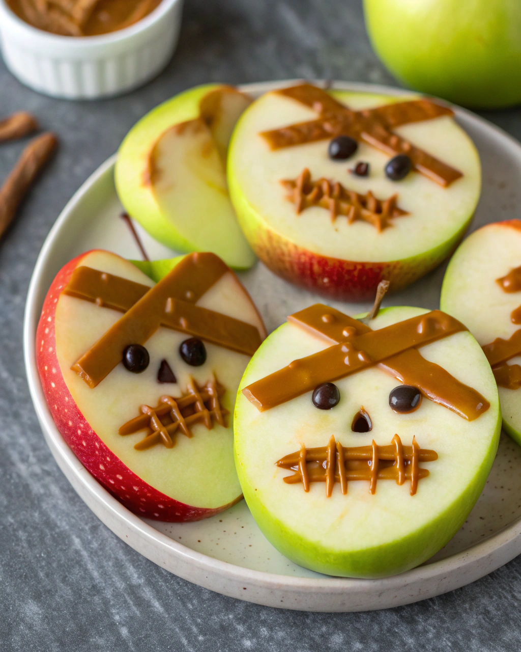 Frankenstein Apple Slices with Peanut Butter – healthy Halloween apple snack