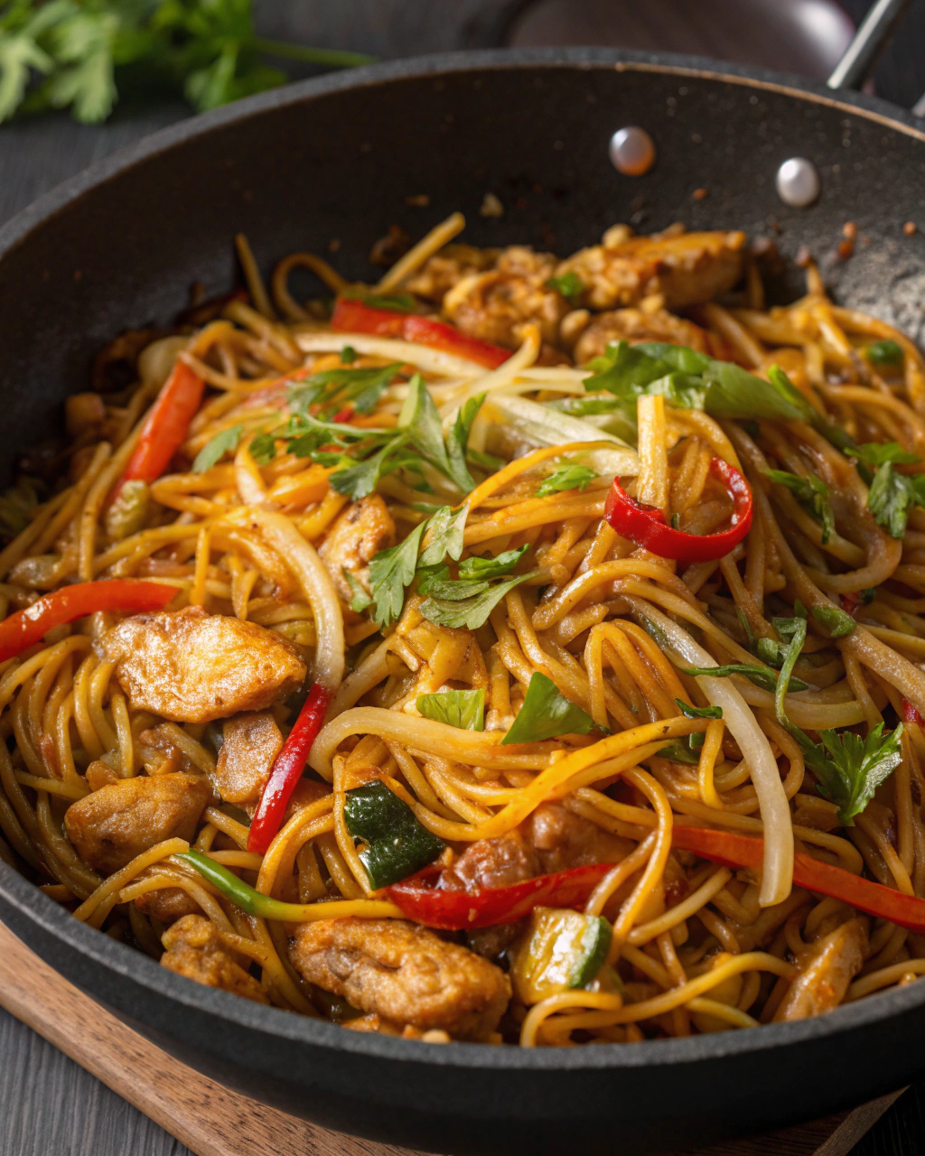 - Yes! Prep the chicken, slice the veggies, and mix the sauce up to a day ahead. Store components separately in the fridge and stir-fry everything for 6–8 minutes when ready. Reheat gently; the noodles hold up best if you undercook them slightly before storing.