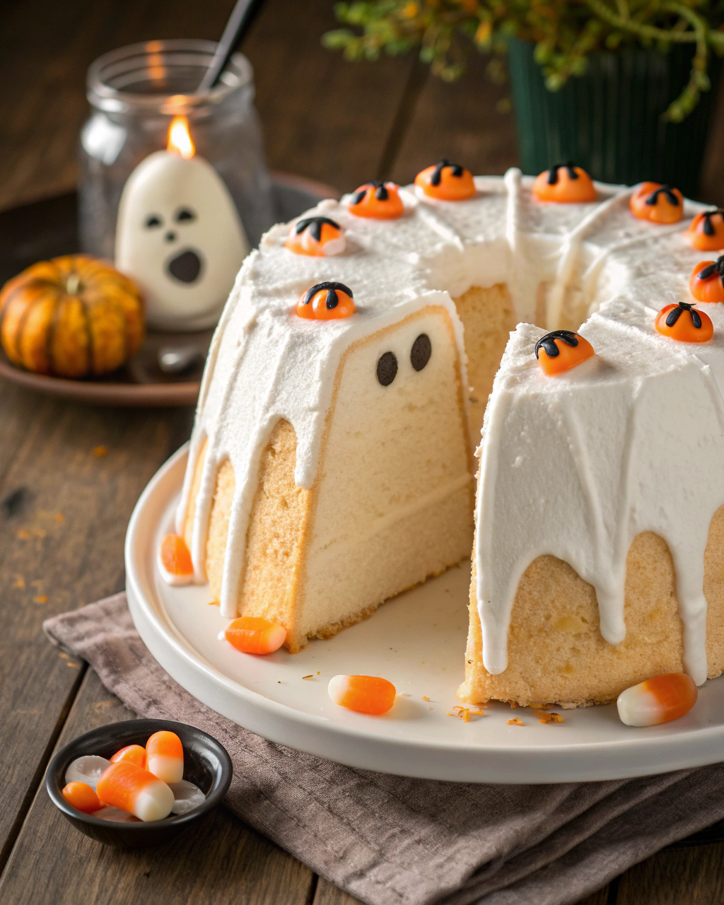 Ghostly Angel Food Cake – light and fluffy Halloween dessert