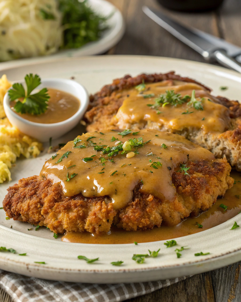 Closing: This golden country-fried steak with homestyle gravy is a foolproof recipe that always fills the kitchen with irresistible smells and warms the soul—perfect for any night you need a little extra comfort.