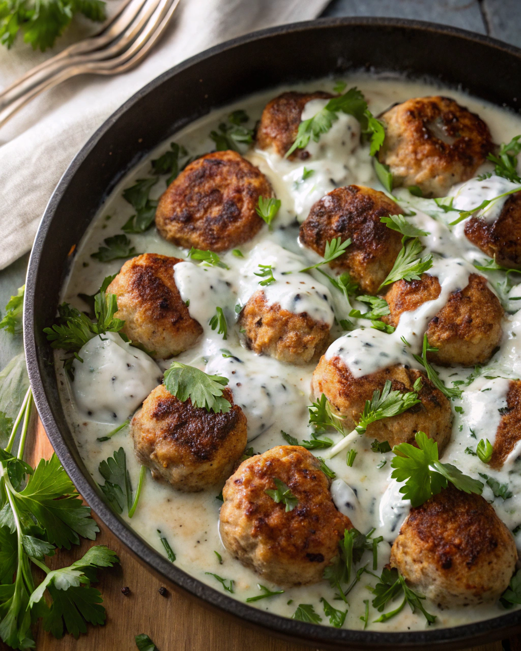 Serve the warm meatballs alongside a generous dollop of tzatziki, drizzled with a little olive oil if you like. Garnish with extra fresh dill or parsley for a pop of color.