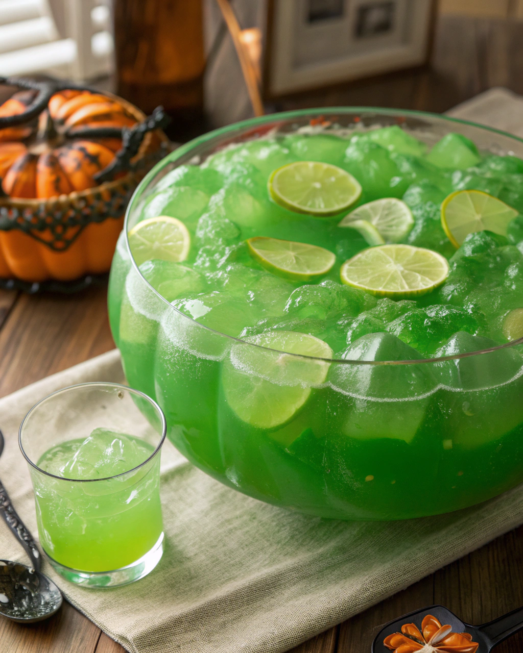 • Use orange sherbet instead of lime for a Halloween twist with orange “slime.”