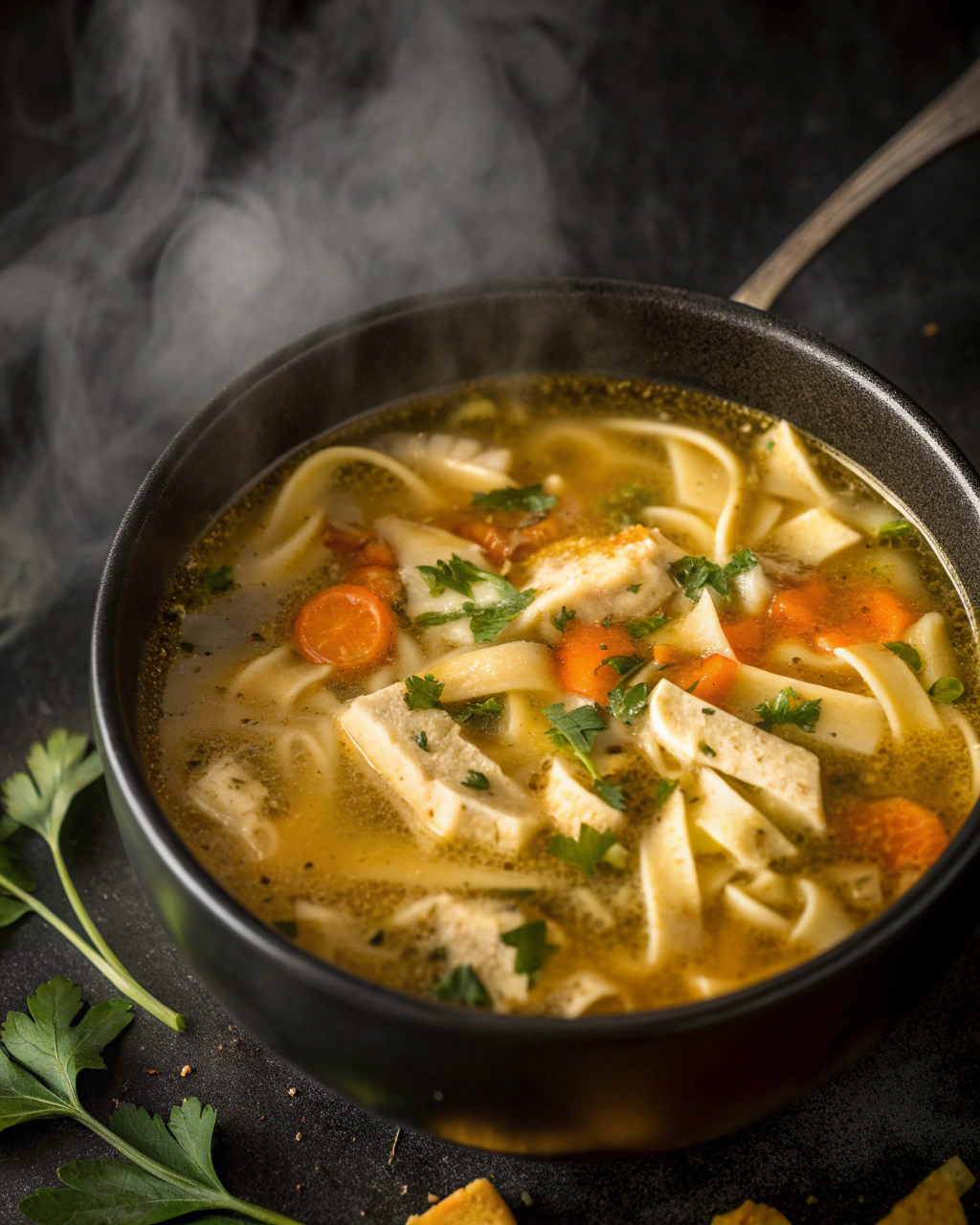 There’s just something magical about homemade chicken noodle soup, isn’t there? I remember coming inside from a chilly day as a kid, and the second I caught a sniff of that bubbling pot on the stove, all the cold melted away. The golden broth, tender chicken, and those silky egg noodles—comfort on a spoon. This recipe has that same nostalgic coziness but is simple enough for any home cook to pull off. Trust me, once you get this simmering, you’ll have that warm, savory aroma filling your kitchen and your heart in no time. Plus, I’ve got a few tricks up my sleeve to keep the noodles perfectly tender and the broth shimmering with flavor. Ready to make your own little bowl of comfort?