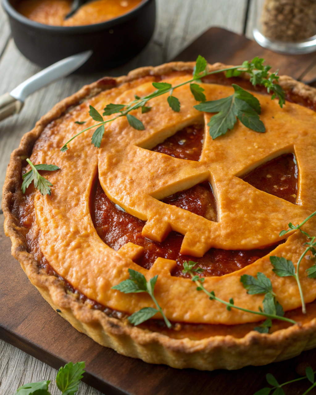 Cool the pie on a wire rack for at least 2 hours. This lets the filling fully set and makes slicing neater. If your jack-o’-lantern edges brown too quickly, tent with foil halfway through baking.