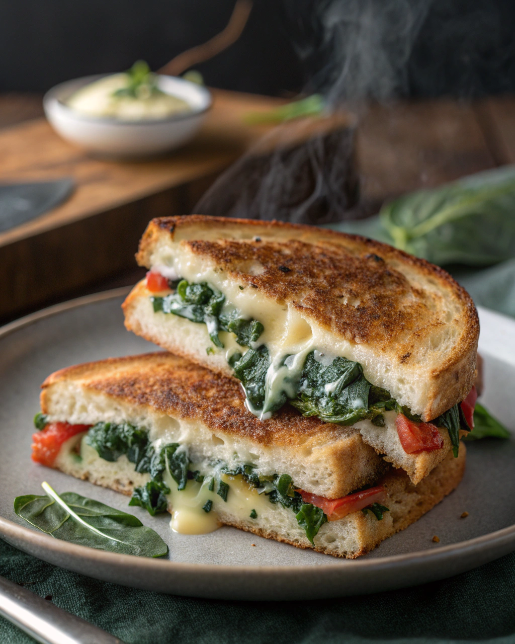 Closing: This Mediterranean Spinach Grilled Cheese is a total crowd-pleaser—simple, fresh, and always hits the spot with that perfect balance of crunch and melt.
