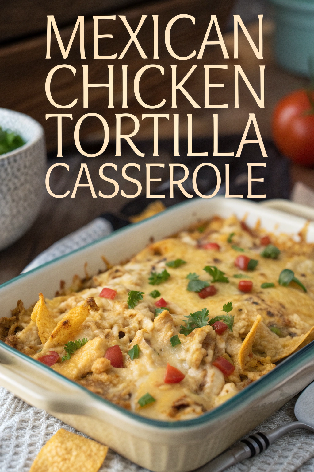 This Mexican Chicken Tortilla Casserole hits all the home-cook sweet spots: melty cheese, saucy filling, and those irresistible crispy tortilla edges that crackle when you slice into them. It tastes layered — warm spices, tangy tomatoes or salsa, and bright cilantro — and it fills the house with a comforting aroma. It’s so easy even your oven can’t mess it up, and it doubles as great leftovers (or next-day lunch magic).