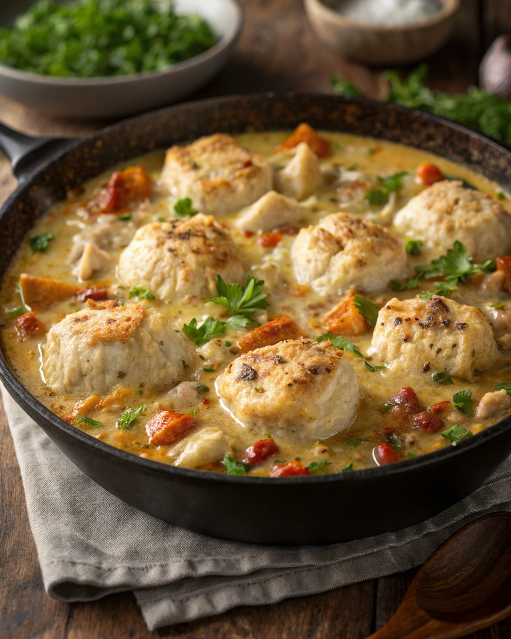 My grandma kept a dented enamel pot on the stove that seemed to live there, and every chilly afternoon the whole house smelled like warm thyme and bubbling chicken broth. I still remember the sound — a gentle, steady simmer that meant comfort was minutes away. I learned to stir dumpling batter with one hand and sip hot tea with the other while she taught me to “listen” for the right simmer. This recipe grew from those cozy afternoons: simple, forgiving, and utterly soul-soothing. If you want something that smells like home, thickens into a creamy hug, and makes everyone ask for seconds, you’ve come to the right place.
