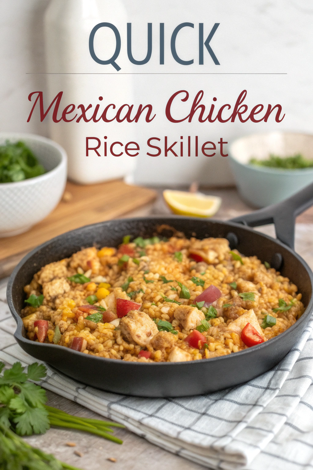 I promise I didn’t plan to set off the smoke alarm the first time I made this, but that sizzling pan and the smell of warm spices hooked me for life. If you want dinner that tastes like a hug and comes together faster than you can decide between takeout menus, this Quick Mexican Chicken Rice Skillet is your new best friend. It’s bright with lime, cozy with melty cheese, and loud with cumin and paprika—no fancy equipment, just one skillet and a hungry crowd. I’ll walk you through every step, including the tiny tricks that stop chicken from drying out and keep rice fluffy (not soggy!).