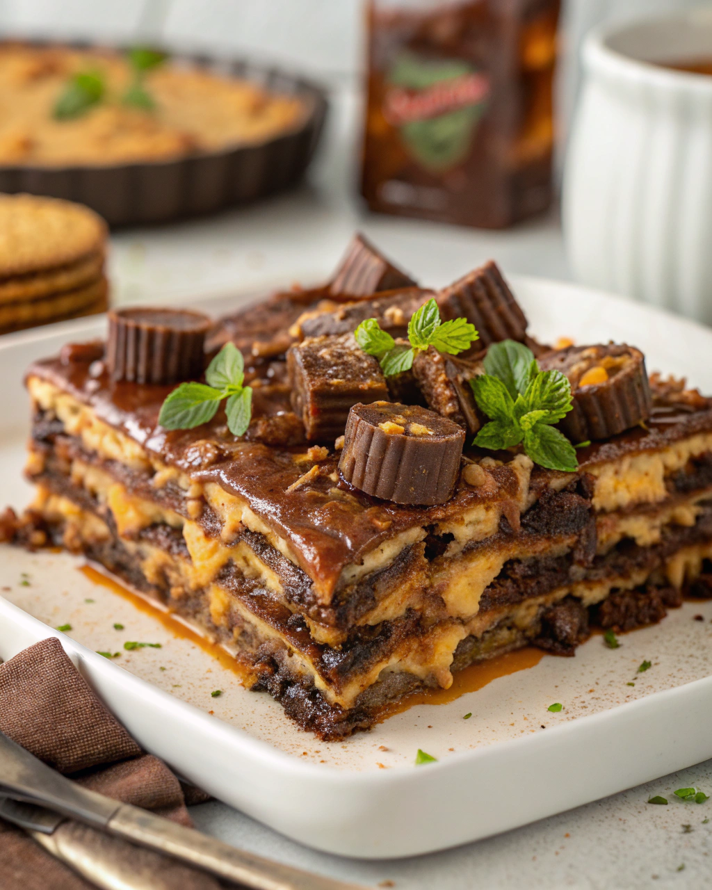 Okay, I have to admit something right off the bat: this isn’t your traditional lasagna. Nope, this is dessert-level, peanut buttery, chocolatey layers of pure joy — kind of like if Reese’s peanut butter cups decided to throw a party in a pan. The moment I pulled this together, I felt like a kid again, sneaking a candy bar off the counter and thinking, “What if I made that giant, rich, and layered?” The creamy peanut butter meets fudgey chocolate layers, and the crushed Reese’s cups give it a crunch that’s just *chef’s kiss*. Trust me, if you love Reese’s, this dessert is going to become your new obsession.