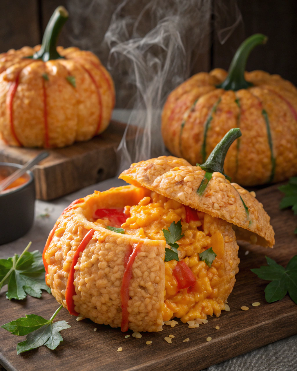 Lightly grease your hands with butter or cooking spray (this step is a lifesaver to stop the sticky fingers!) and scoop out about ½ cup of the mixture. Shape each scoop into a round ball, then gently pinch the sides to form a pumpkin shape. Don’t worry about getting it perfect—rustic is charming here.