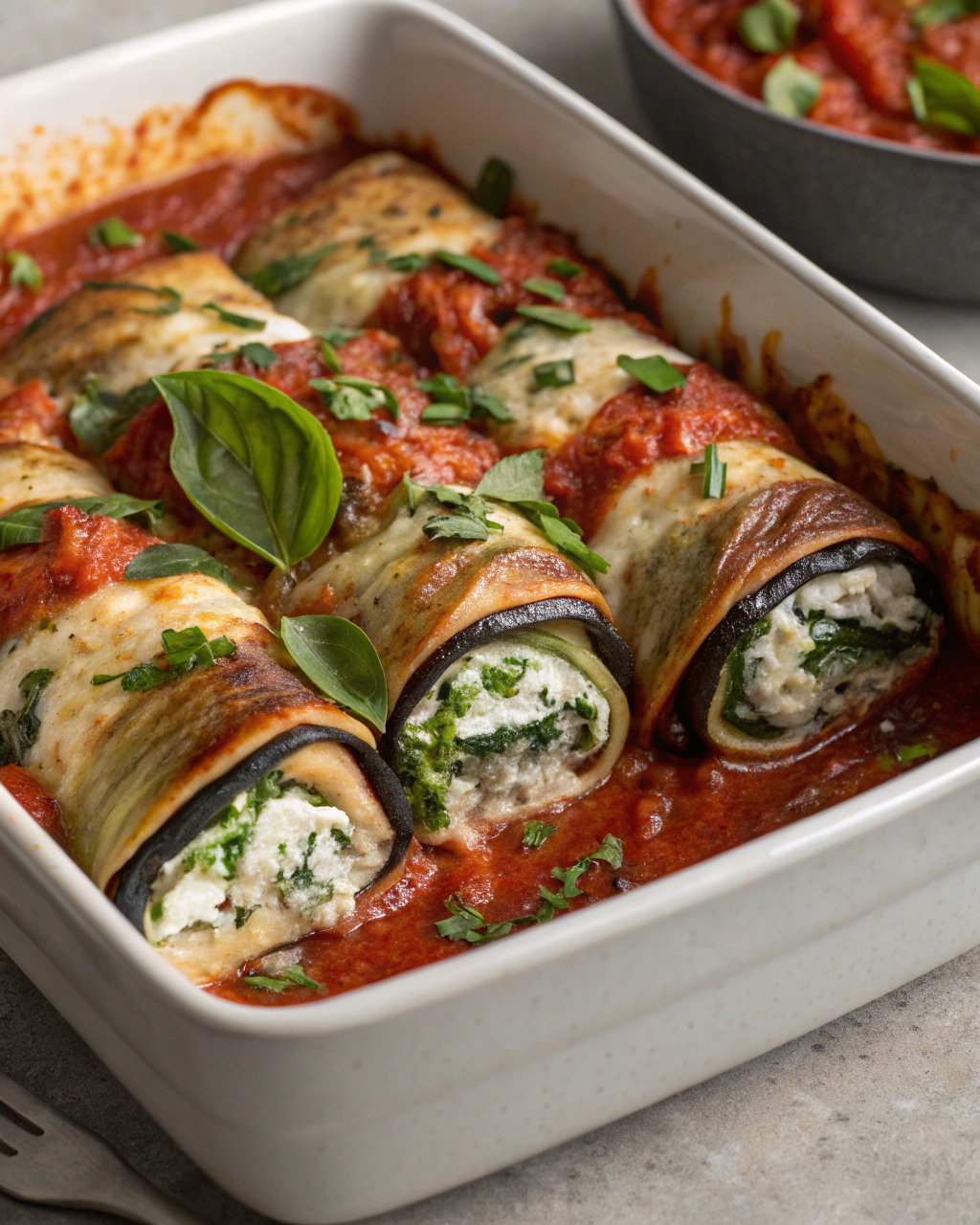 Savory Eggplant Roll-Ups with Creamy Ricotta and Spinach