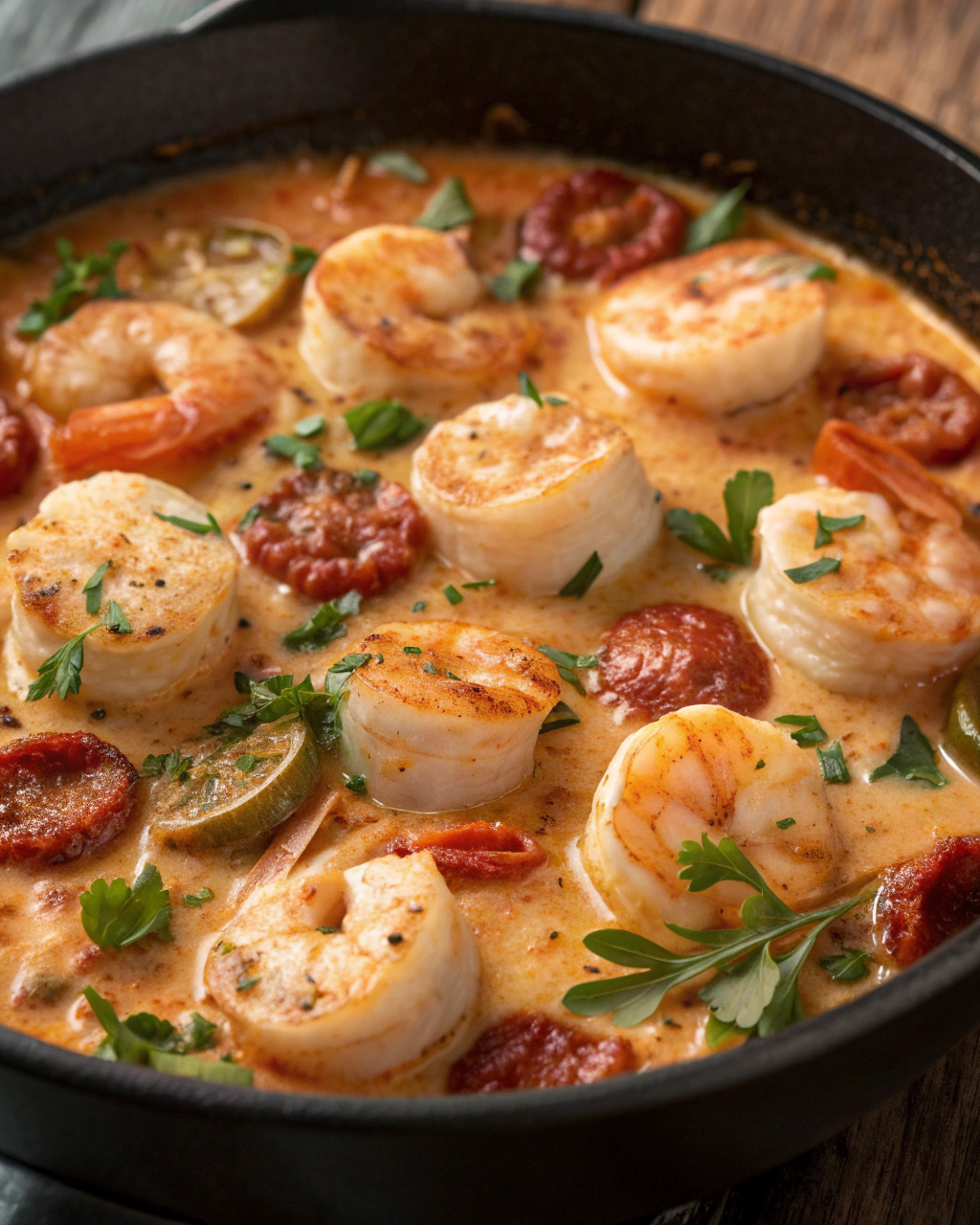 Scallops and Shrimp with Creamy Sun-dried Tomato Sauce