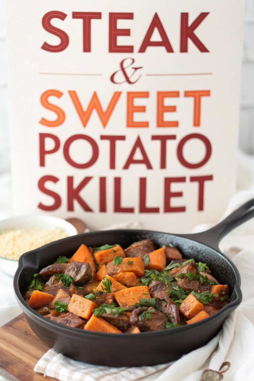 I love meals that feel like a hug in a skillet, and this Steak & Sweet Potato Skillet is exactly that — warm, a little smoky, and honestly a little addictive. Tonight’s dinner smelled like butter, brown sugar caramel, and a pan-seared steak that sang as it hit the hot skillet. I picture cool evenings, plaid blankets, and the sound of a fork scraping crispy sweet potato edges. I keep this one in weekday rotation because it comes together fast, uses one pan, and cleans up without drama. If you want cozy, balanced comfort food with bright herb notes and a little char, you’ll fall for this skillet the way I always do.
