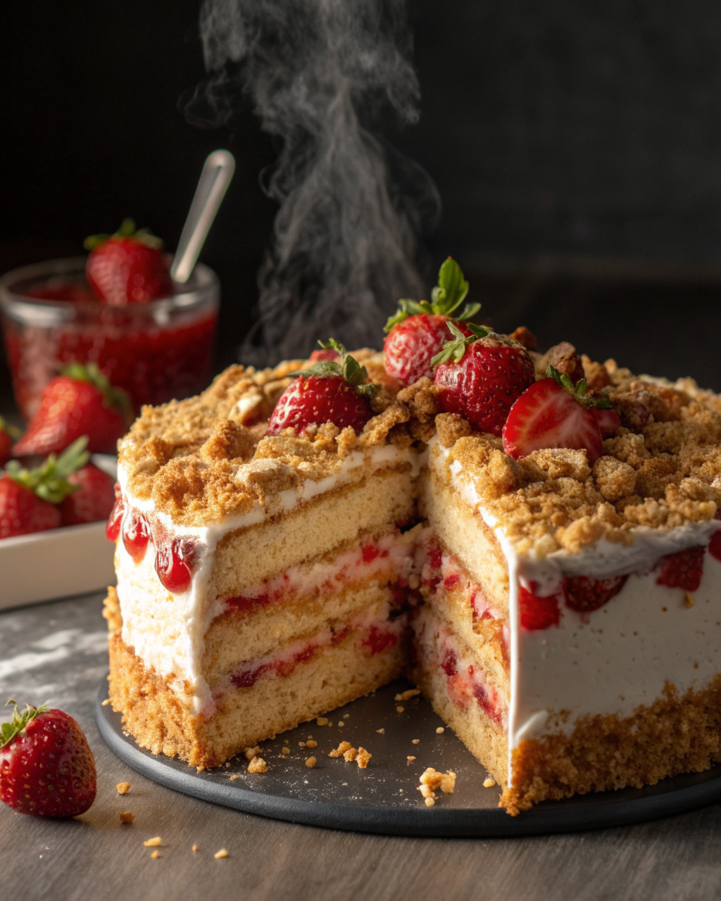 Closing: This Strawberry Crunch Cake is one of those rare desserts that brings together juicy fruit, buttery softness, and a satisfyingly crunchy bite—no wonder it always steals the show!