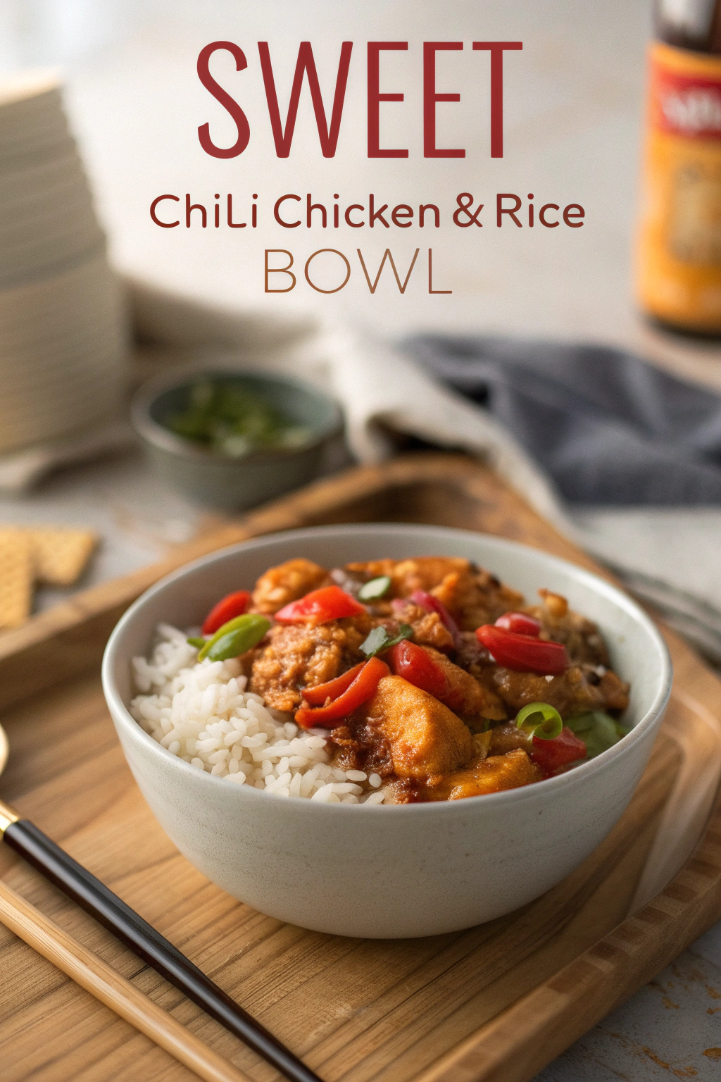 I’m not kidding when I say this bowl has rescued more weeknights than my old pizza delivery habit — and it smells like a little victory every time. Picture glossy, sticky sweet chili sauce coating golden chicken while the kitchen fills with a sweet-spicy aroma that makes the whole family wander in like seagulls at a picnic. I whipped this together one rainy Tuesday with whatever was in the fridge and honestly, it felt like cheating because it tasted so restaurant-level. Quick, forgiving, and colorful — that’s my kind of dinner. Stick with me and I’ll show you how to get crispy edges, juicy chicken, and perfectly fluffy rice without breaking a sweat.