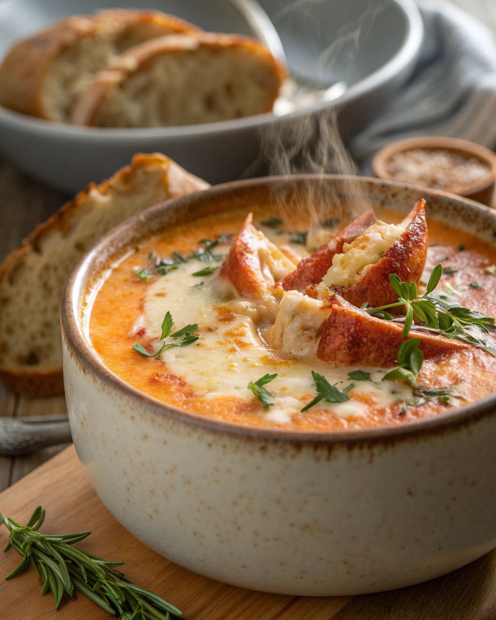 I love serving this crab bisque with crusty baguette slices or garlic butter toast. It’s perfect for a cozy weeknight dinner or as a fancy starter when friends come over. If you’re feeling extra indulgent, a crisp glass of Chardonnay pairs beautifully and elevates the whole meal into a special occasion.