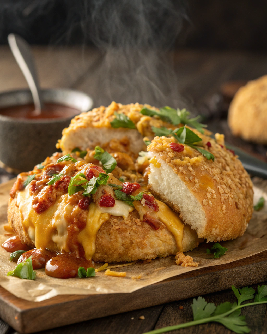 I let the chicken rest 5 minutes on a wire rack so the crust firms up and the juices re-distribute. I squeeze a little lemon over the top, scatter chopped parsley, and serve with that quick zesty mayo dip. The crust crackles, the meat stays juicy, and the lemon brightens each bite — perfection.